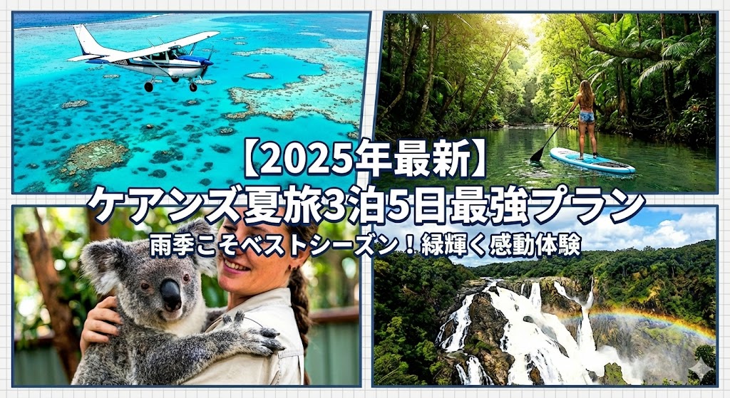 キャンペーンCAMPAIGN サービスと料金SERVICE サービスの流れFLOW 新着情報NEWS【2025年最新】ケアンズの夏旅(12月〜3月)はこう攻める!3泊5日おすすめモデルコースと雨季を120%楽しむ完全ガイド