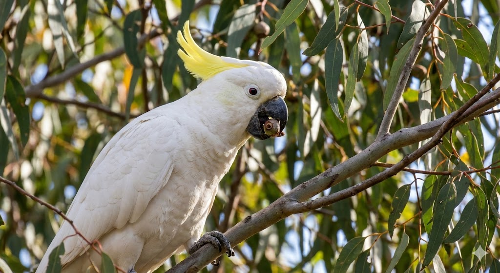 黄色いトサカが特徴の白い大型オウム。夕方、市内の特定の木に大群で集まり、「ギャーギャー」と賑やかに鳴き交わす姿はケアンズの名物です。