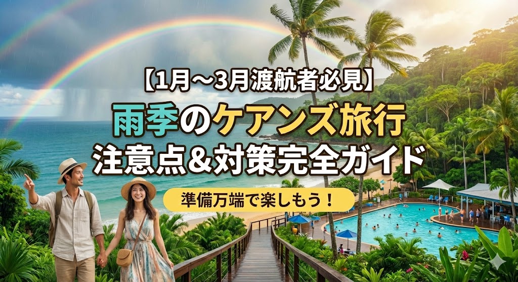 キャンペーンCAMPAIGN サービスと料金SERVICE サービスの流れFLOW 新着情報NEWS【1月〜3月渡航者必見】雨季のケアンズ旅行で失敗しないための注意点&対策完全ガイド