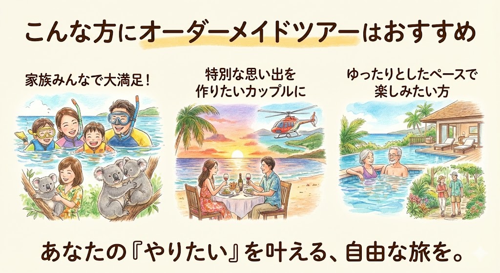 スマイルケアンズだからこそ実現できる、オーダーメイドツアーの具体的な活用法をご紹介します。
