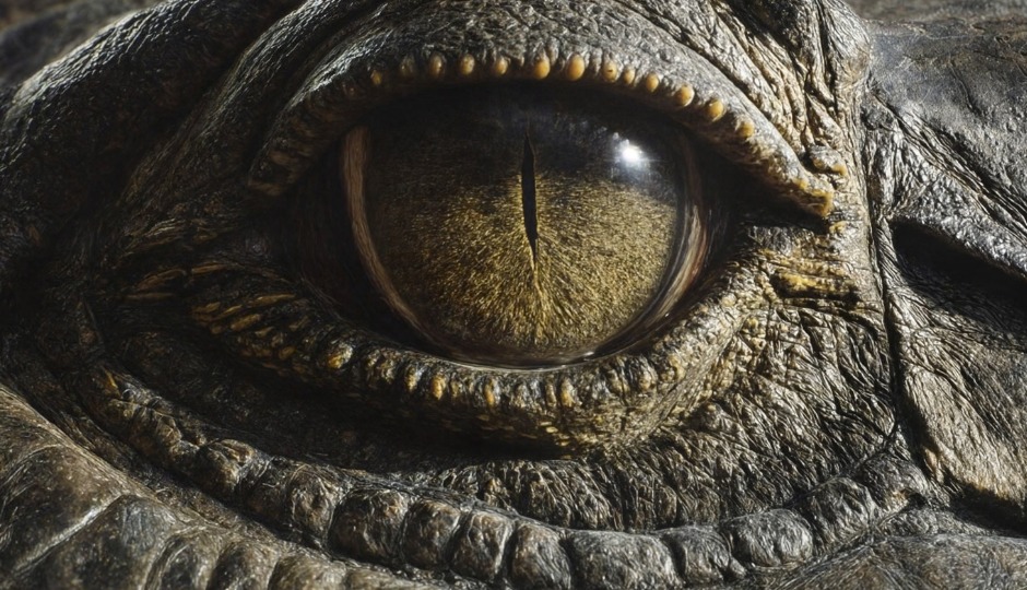 水面から巨大なワニが姿を現す瞬間は、息をのむほどの迫力です。