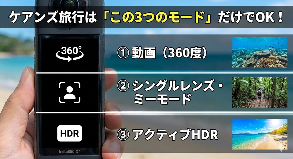 今回は、レンタルされたお客様向けに、「これだけ覚えればOK!」という基本の使い方と、ケアンズで映える撮影のコツを徹底解説します。