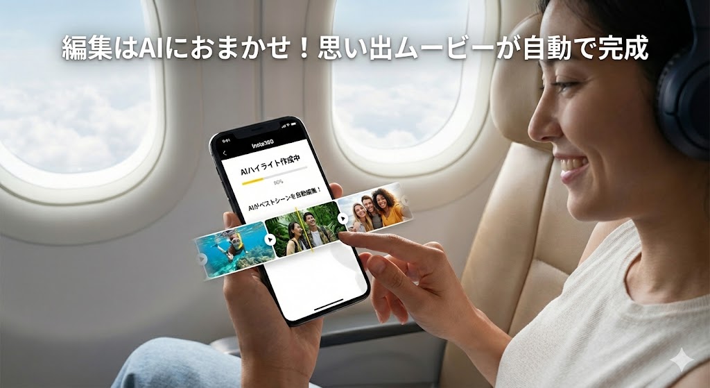 「360度動画って編集が難しそう…」と思っていませんか? Insta360アプリの「AI編集」なら、撮影した動画を解析して、いい感じのシーンを勝手に繋いでハイライトムービーを作ってくれます。