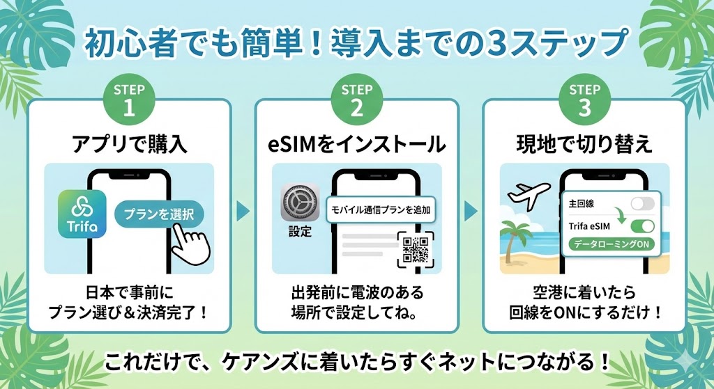 これからケアンズへお越しになる方は、ぜひ次世代の通信手段「eSIM」を試してみてください。