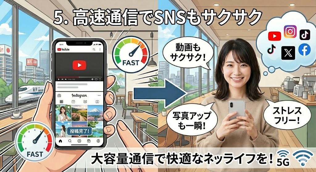 5. 高速通信でSNSもサクサク